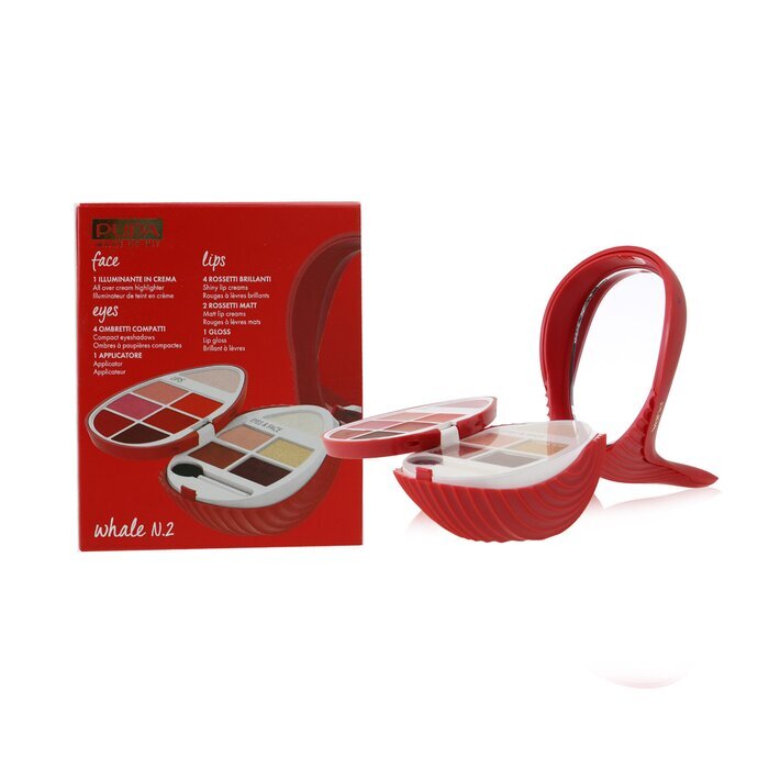 Meet the Pupa Whale N.2 Kit - #003, a compact makeup set designed for the face, eyes, and lips. Weighing 6.6g / 0.23oz, this all-in-one kit is ideal for on-the-go beauty and travel.